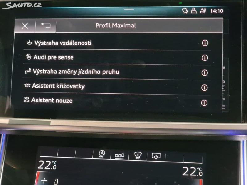 | Asistenční systémy | asistent rozjezdu do kopce (HSA), ukazatel rychlostního limitu (SLIF), hlídání jízdního pruhu, hlídání mrtvého úhlu, asistent jízdy v koloně, asistent změny jízdního pruhu, asistent jízdy v jízdním pruhu, sledování únavy řidiče, adaptivní tempomat, automatické přepínání dálkových světel, volba jízdního režimu, head-up display, hlídání provozu při couvání (RCTA), 360° monitorovací systém (AVM), parkovací asistent, parkovací kamera, senzor světel, senzor stěračů |