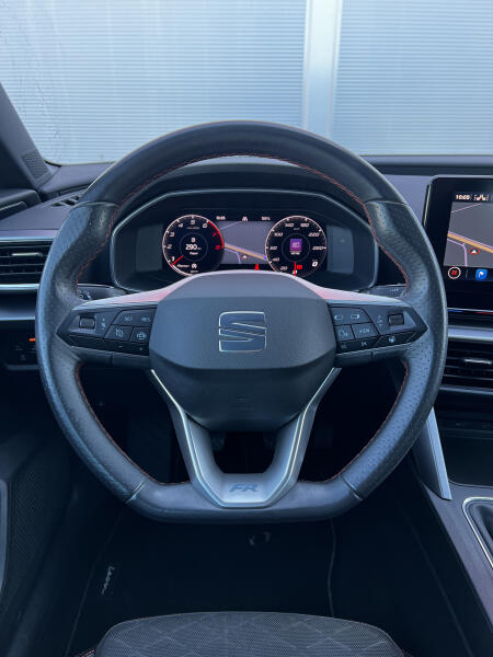 | Vnitřní výbava a komfort | dvouzónová klimatizace, nastavitelný volant, multifunkční volant, vyhřívaný volant, el. okna, el. sklopná zrcátka, el. zrcátka, startování tlačítkem, potahy kůže, kožené čalounění, ambientní osvětlení interiéru, vyhřívaná zrcátka, zadní stěrač, tónovaná skla |