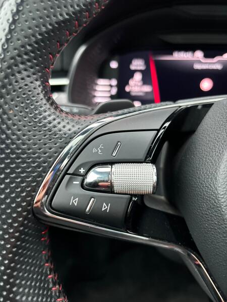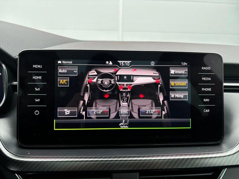| Vnitřní výbava a komfort | dvouzónová klimatizace, nastavitelný volant, multifunkční volant, el. okna, el. sklopná zrcátka, el. zrcátka, startování tlačítkem, ambientní osvětlení interiéru, vyhřívaná zrcátka, zadní stěrač, tónovaná skla, malý kožený paket |