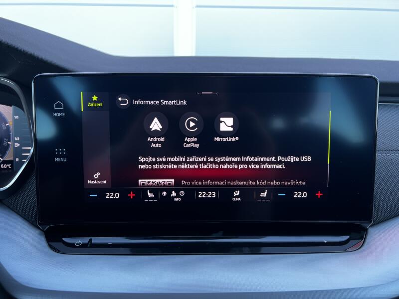 | Palubní systémy a konektivita | palubní počítač, hlasové ovládání palubního počítače, dotykové ovládání palubního počítače, digitální přístrojový štít, satelitní navigace, hands free, Android Auto, Apple CarPlay, bluetooth, USB, autorádio, venkovní teploměr, digitální přístrojová deska |