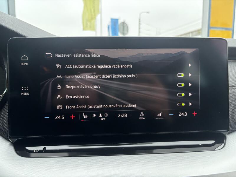 | Asistenční systémy | hlídání jízdního pruhu, asistent jízdy v koloně, asistent změny jízdního pruhu, asistent jízdy v jízdním pruhu, sledování únavy řidiče, adaptivní tempomat, parkovací senzory přední, parkovací senzory zadní, parkovací asistent, parkovací kamera, senzor světel, senzor stěračů |