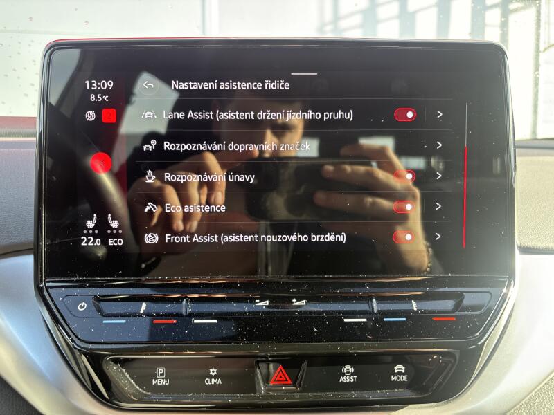 | Asistenční systémy | hlídání jízdního pruhu, asistent jízdy v koloně, asistent změny jízdního pruhu, asistent jízdy v jízdním pruhu, sledování únavy řidiče, adaptivní tempomat, volba jízdního režimu, parkovací senzory přední, parkovací senzory zadní, parkovací asistent, senzor světel, senzor stěračů |